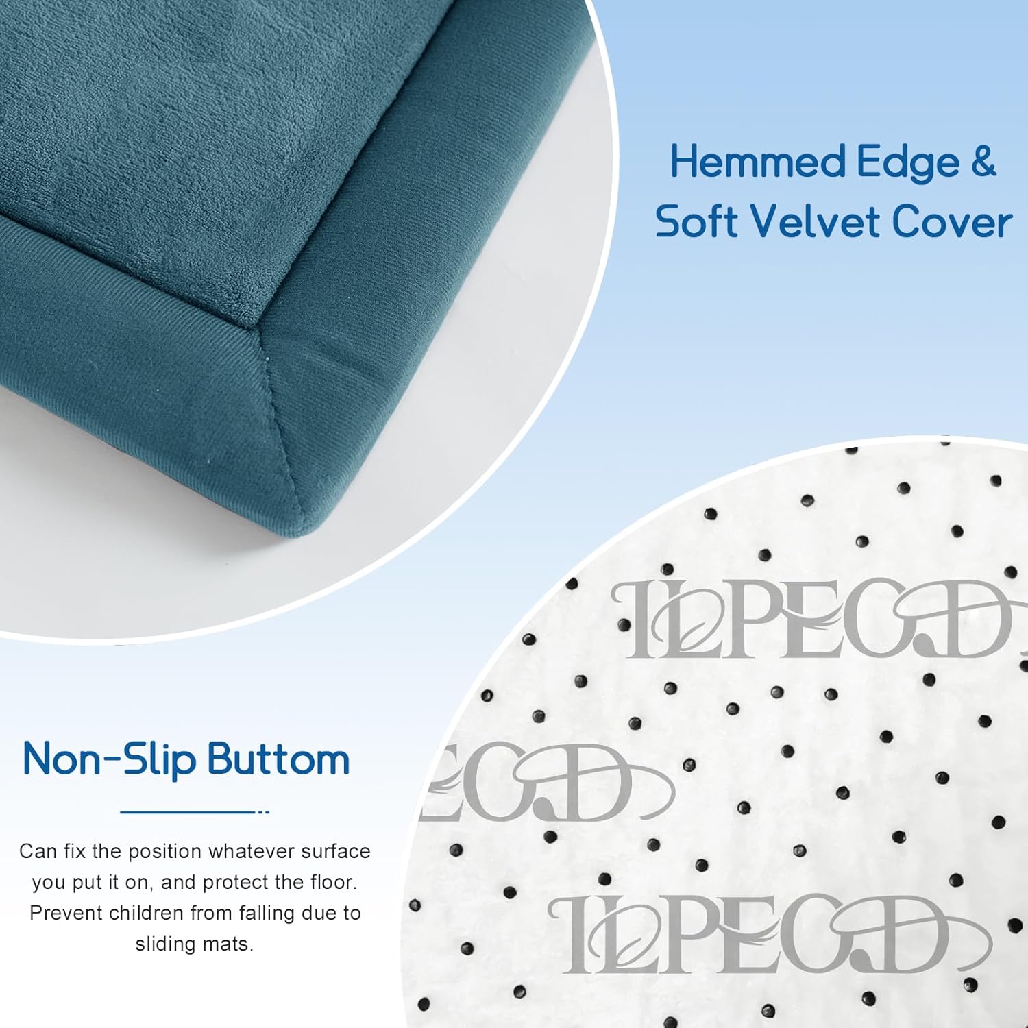 - 🐣SAFE & COMFY: Our baby play mat is made of 100% coral velvet material and filled with high-quality 3.5cm thick memory foam,eco-friendly and durable, providing a safe and comfortable play area for your babies, without worrying about them hurting themselves on hard floors.The surface of this tummy time mat is velvet cover, which is not only soft and comfortable to touch, but also has a good cushioning effect.