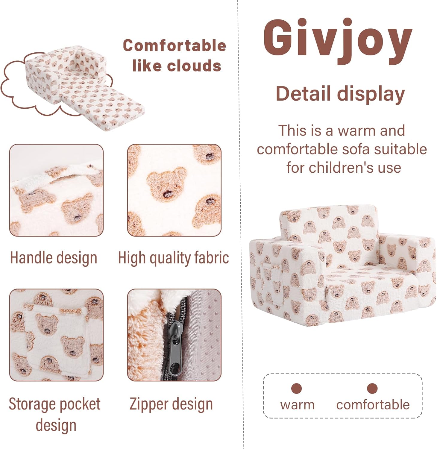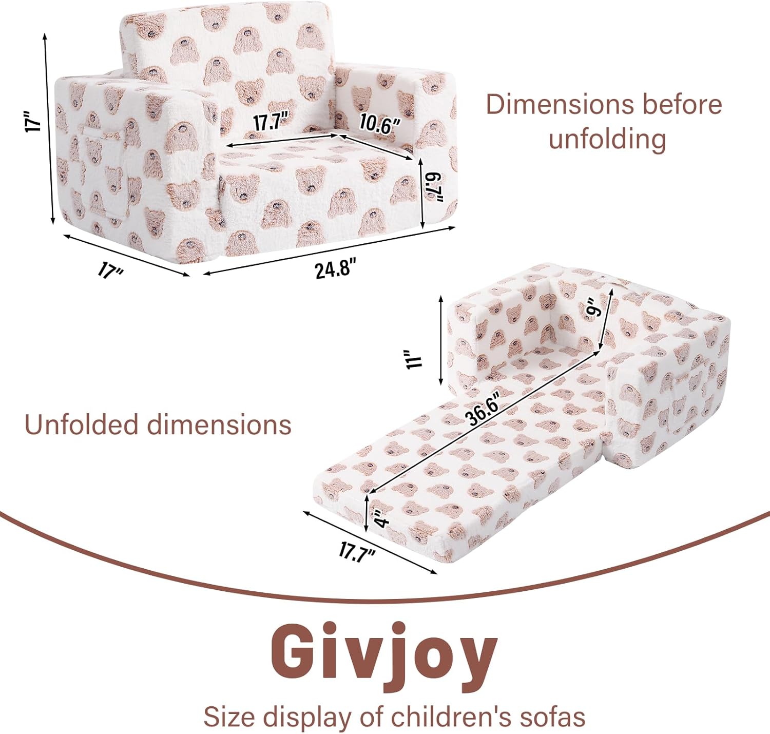 Toddler Chair Kids Couch, 2-in-1 Comfy Armchair with Removable and Washable Cover Carrying Handle, Convertible Reading Chair Toddler Couch for Girls and Boys
