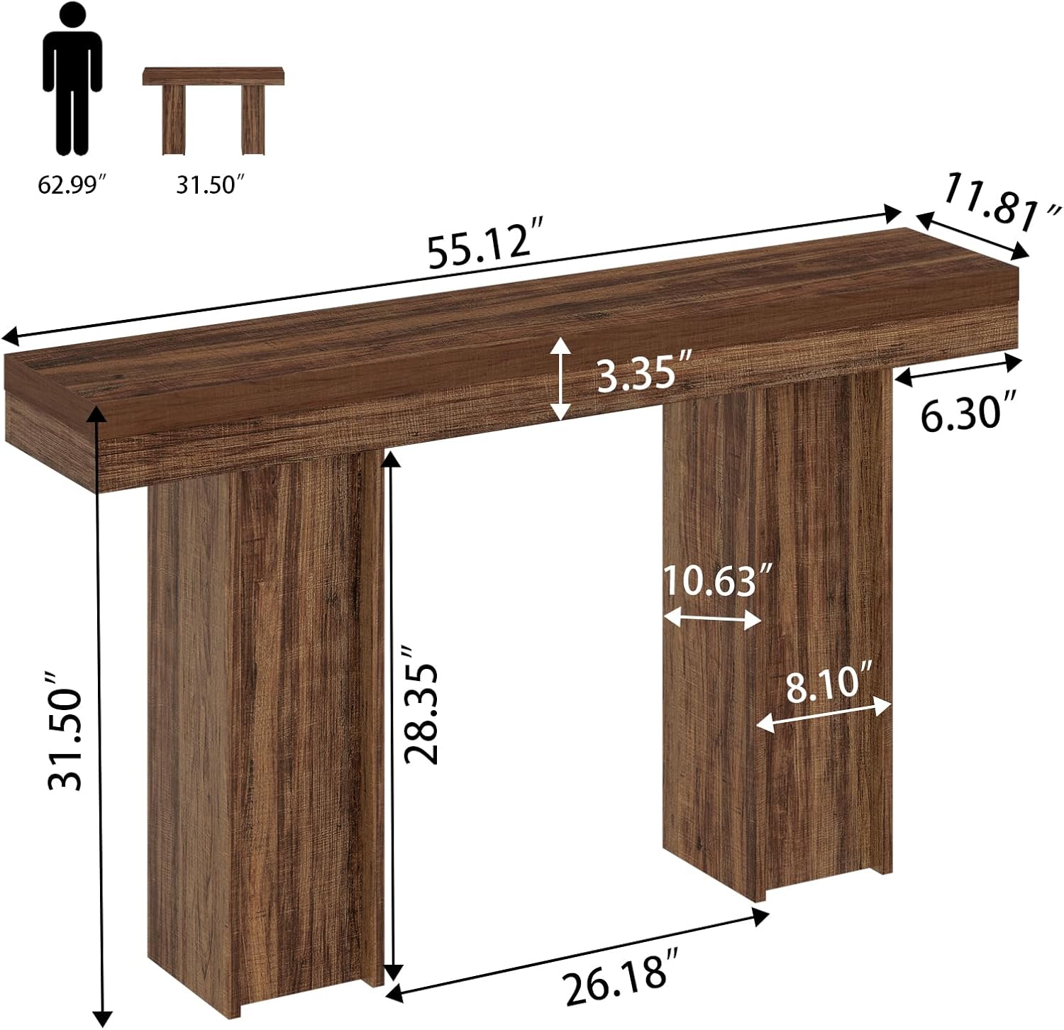 55Inch Farmhouse Console Table,Wooden Rectangular Sofa Table Behind The Couch,Entryway Console Table with Storage for Living Room, Hallway,Entrance (Light Brown)
