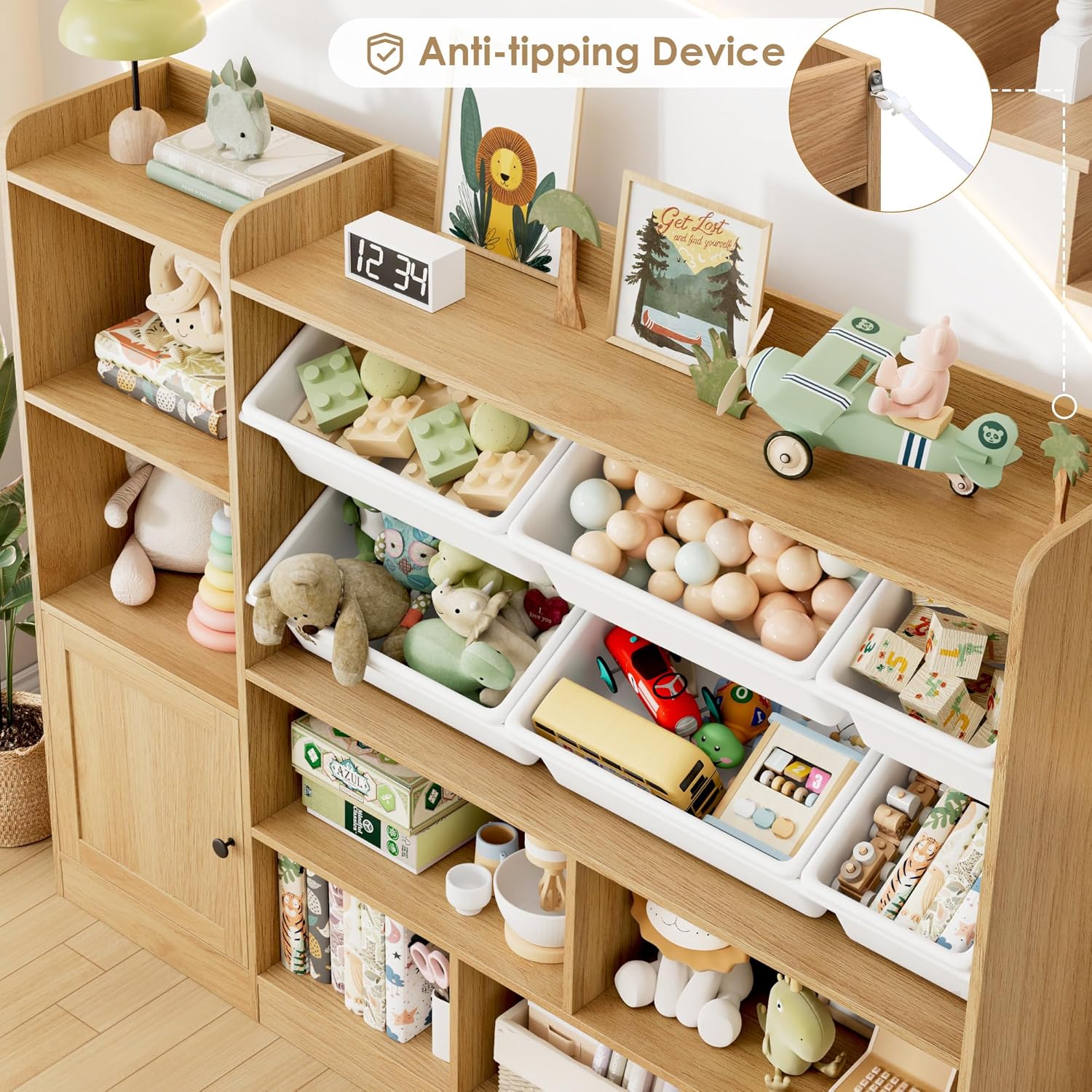 - DIY Kids Toy Organizer: Children's room organization complements the kids toy storage. The classic pure oak color gives children more creative space to doodle, draw and sticker, inspiring unlimited imagination.