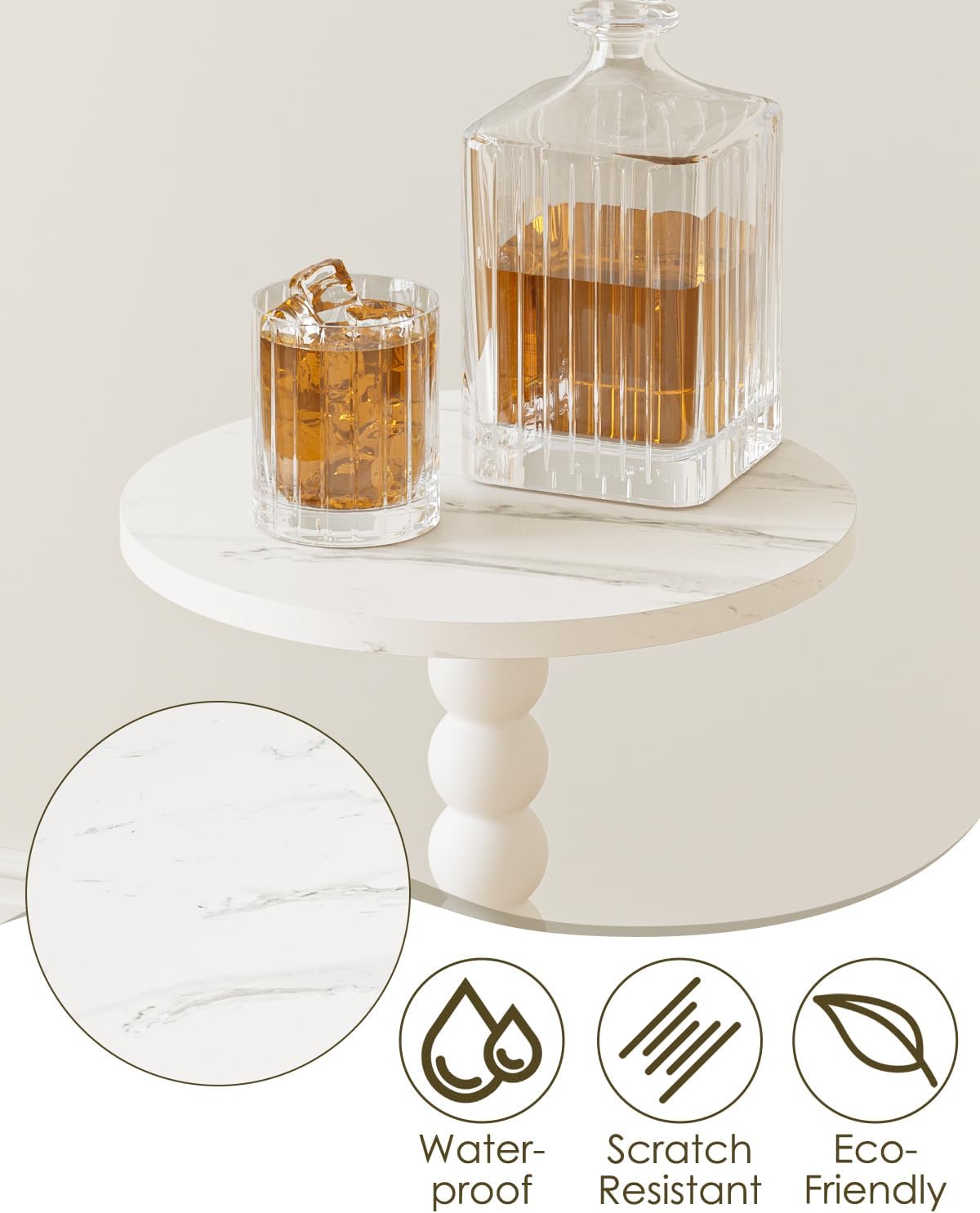 - Premium Materials & Durability - The PU-coated tabletop is waterproof, scratch-resistant, and easy to clean, while the sturdy metal rod and weighted pedestal base ensure stability. Velvet pads protect your floors from scratches.