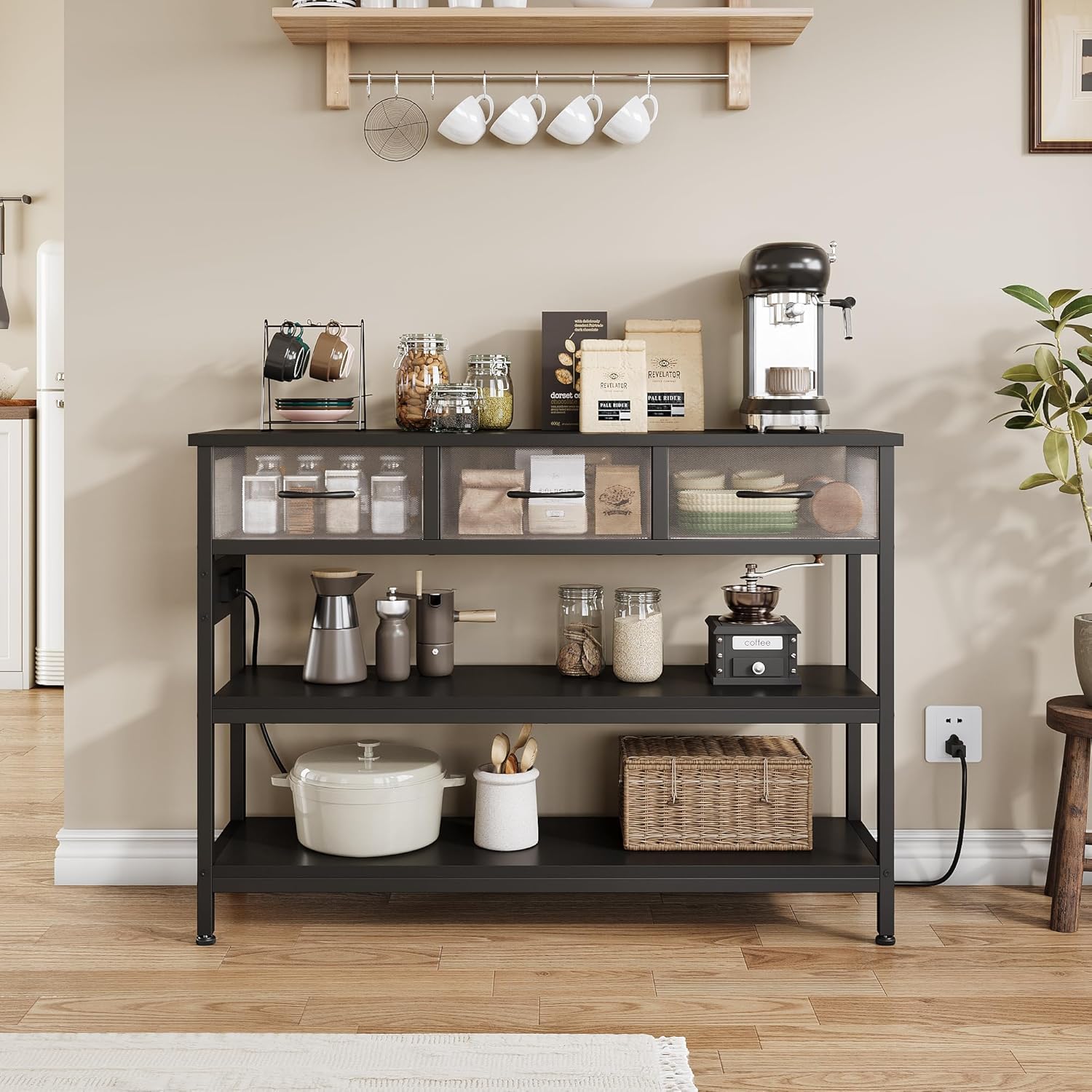 - Console Table with Storage: The entryway table comes with 3 fabric drawers to "keep clutter away". Great for storing goodies like keys, hats, gloves, cookbooks, remote controls and extra cables etc