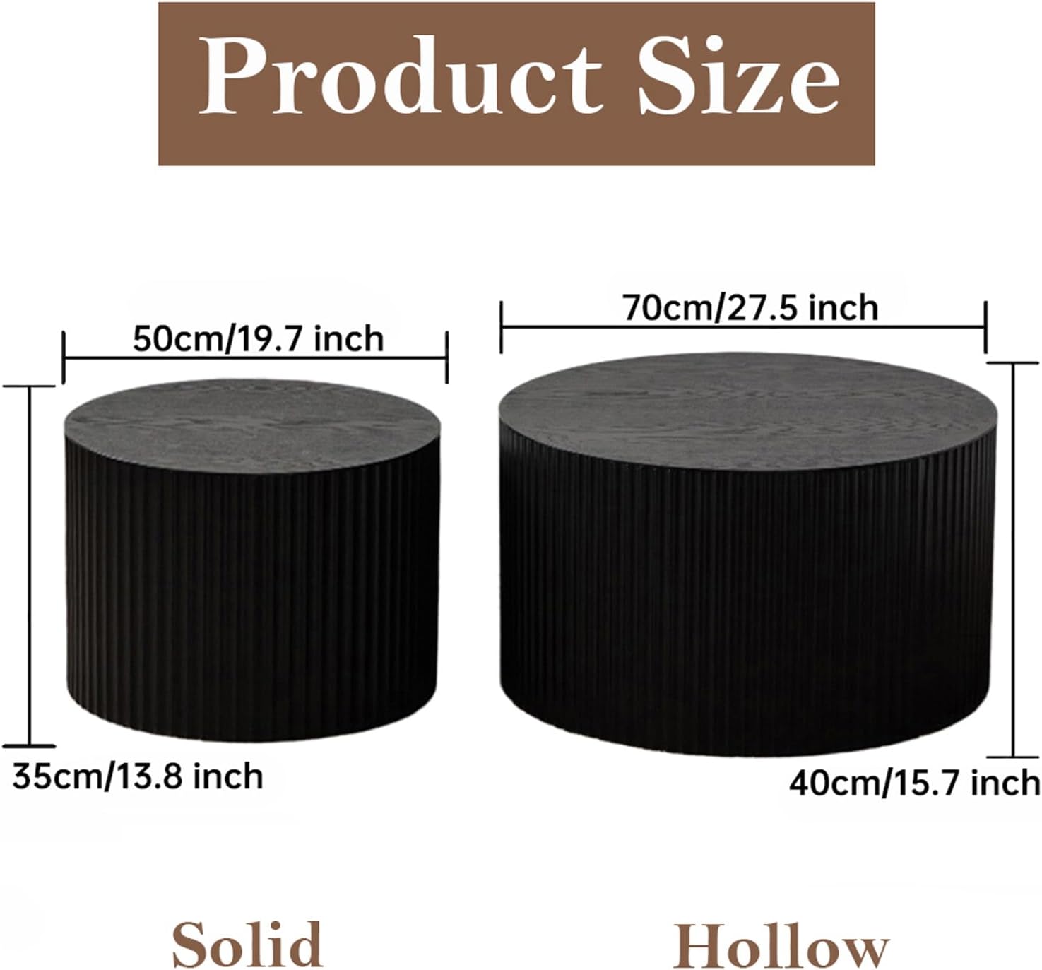 Round Nesting Coffee Table Black Round Fluted Coffee Table Set of 2 for Living Room Small Circle Drum Nested Coffee Tables (Black A 27in)